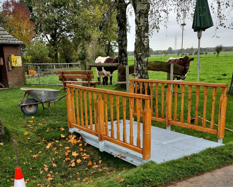Der kleine Wassergraben, der den Fahrradrastplatz von der Straße Lichtenholz trennt, wurde mit einer Brücke ausgestattet. Die Brücke ist nun altersgerecht, für Fußgänger stolperfrei sowie Geh-, Rollstuhl und Radfahrer gerecht. Immer mehr Menschen mit Gehilfen, Kinderwagen und Rollstühlen nutzen die Strecke vom Ortskern Hamminkeln zum Fahrradrastplatz für einen kleinen Ausflug.